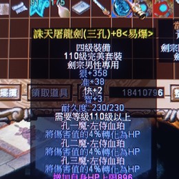 男劍四級武器 諸天屠龍劍+8 魔-左侍3顆