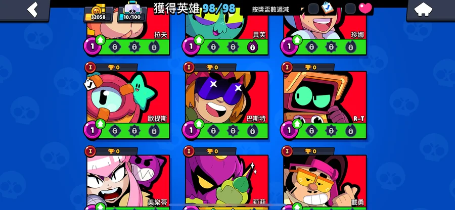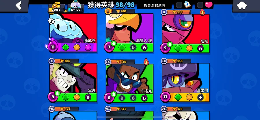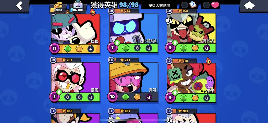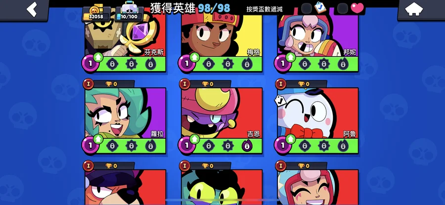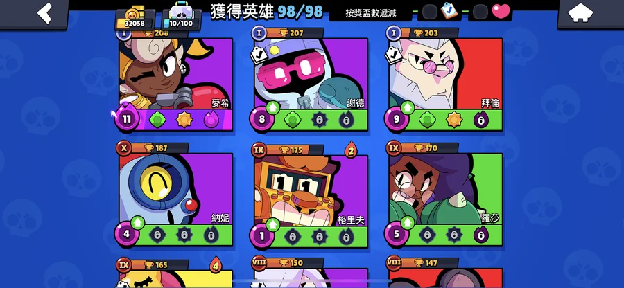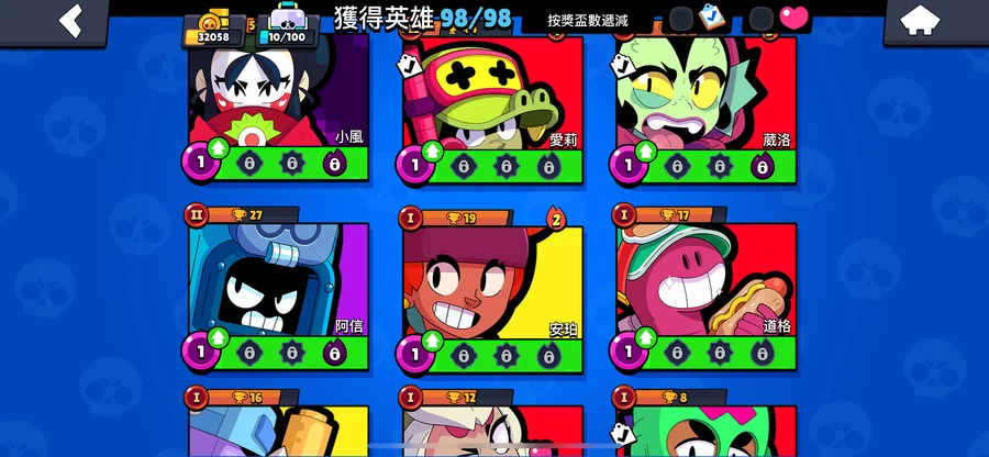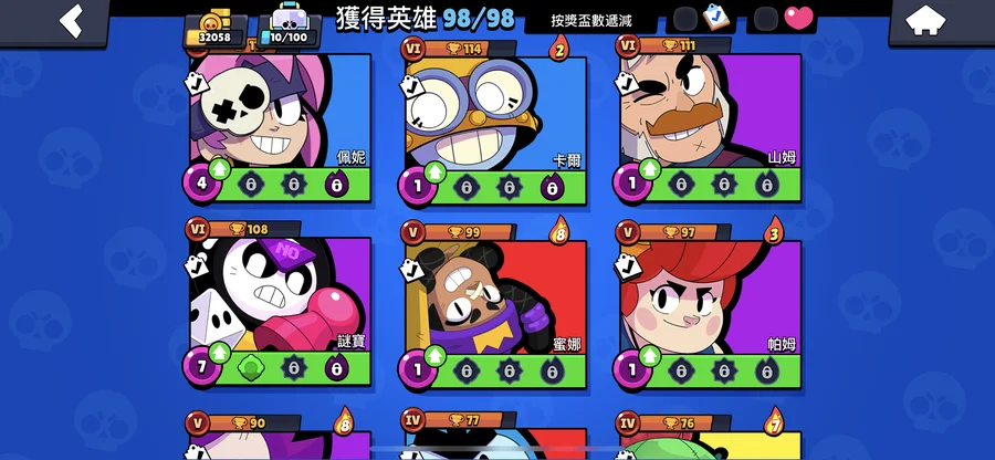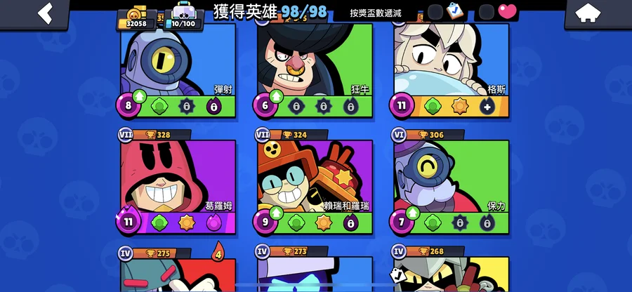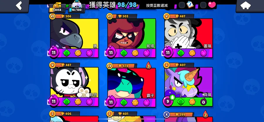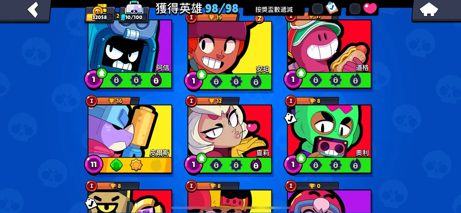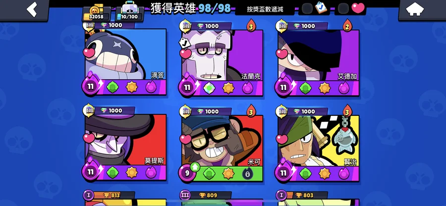 99隻英雄 38隻滿等。12隻1000盃