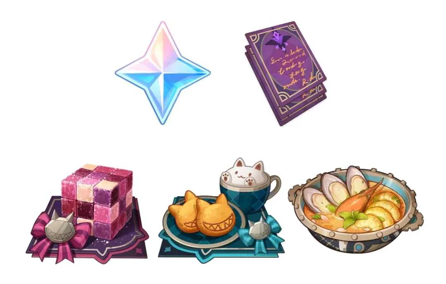獎勵內容包含:原石x20、大英雄的經驗x3,以及三款塵歌壺擺設「奇術方塊」、「午後茶會」、「海鳥的休憩」。