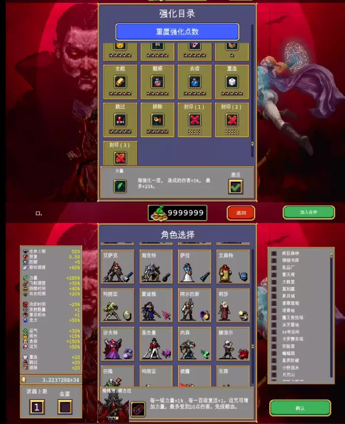 吸血鬼倖存者滿收集存檔:地圖全部解鎖,成就全部解鎖,收藏全部解鎖,封印全解鎖,冒險模式所有地圖和角色全部解鎖+圖鑒技能全解鎖+進度通關