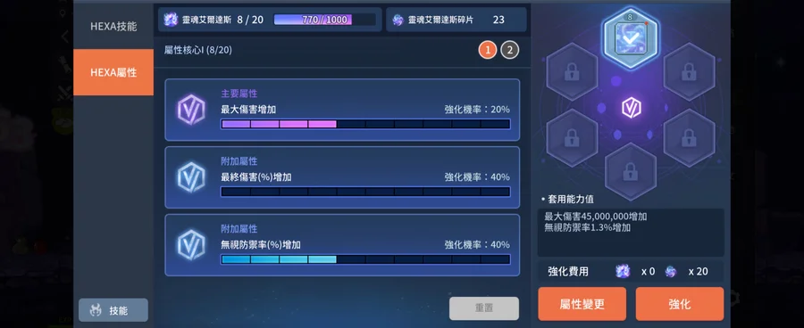 六轉hexa屬性持續更新 會放最新的圖上來
