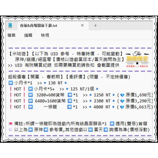 💌備註:鳴潮UID儲值價位較高,建議先聊聊詢價