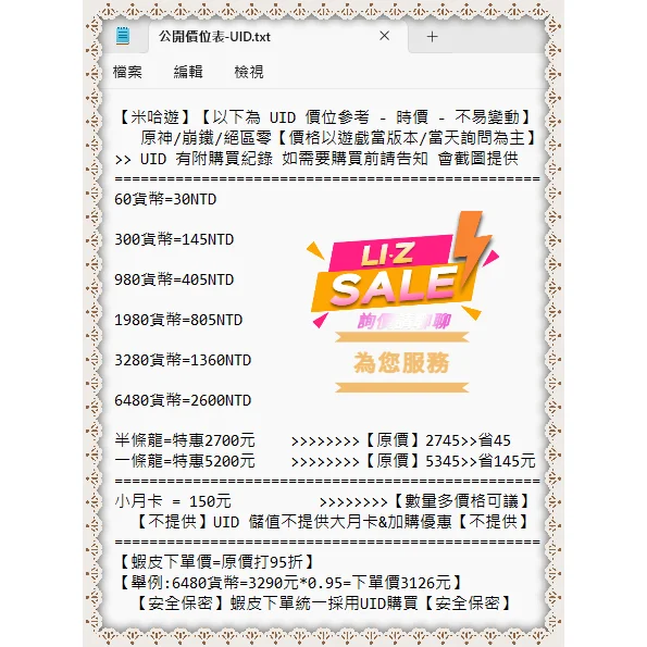 【Li-Z】遊戲代購✨原神‧崩鐵‧絕區零✨💥官方渠道代買💥UID💥快速出貨