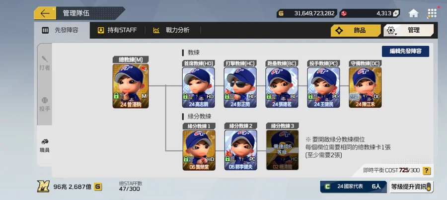 幾乎全員都有飾品,也有24年國家隊總教練