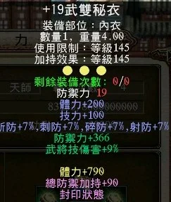 內衣:19武雙秘衣(三洞嵌武傷9%,0/0次)