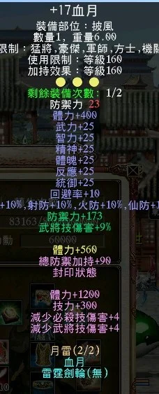 披風:17血月(三洞嵌武傷9%,1/2次)