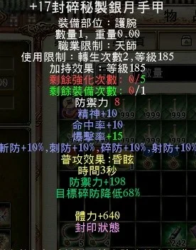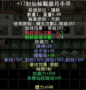 護腕:17秘製銀月(火70%、仙64%、碎68%、