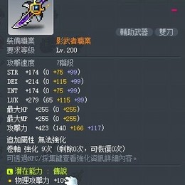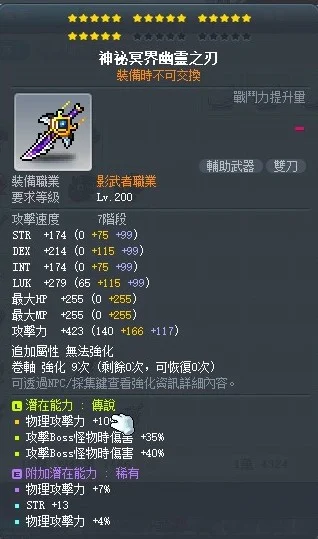 主潛能:75%BOSS10%物攻(次頂主流主潛能)