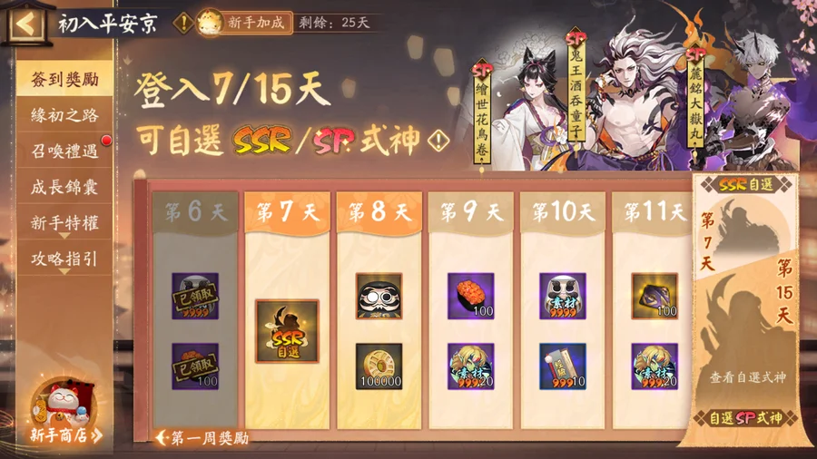 新手成長福利每日登入可得珍貴獎勵7/15限定自選SSR/SP未觸發