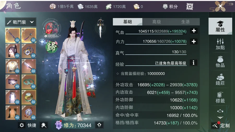 特技:偷襲 暴虐 神力外 神力屬 動如脫兔 破竹 雁行身上還有1635銀兩 1720銀票包裡還有1寒鐵2玄鐵10樹枝