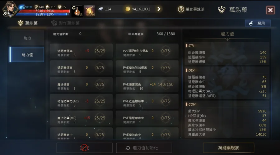 真實面板140攻擊,215防,沒有吃袋子、沒有買buff商人,跟防禦卷