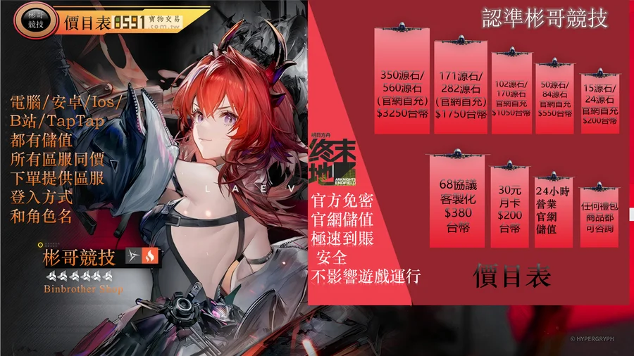 350源石=3250台幣(官網首充雙倍=560源石)