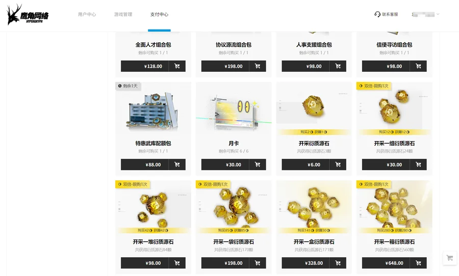 以下源石數量為官網標示(官服根據官網顯示為準),渠道服會略少(根據渠道服遊戲內顯示為準)