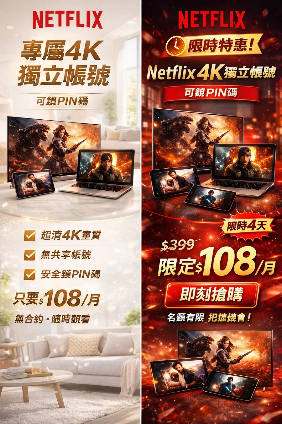 3️⃣:Netflix 如果是需要電視版的請下單「電視版」,一般版不能使用電視 務必注意⚠️。