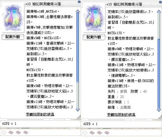 +10變幻莫測魔術斗篷1S(ASPD+1)速1