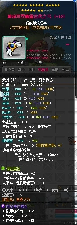 武器主職用潛:80%BOSS40%無視(頂%BOSS職業主流主潛能)