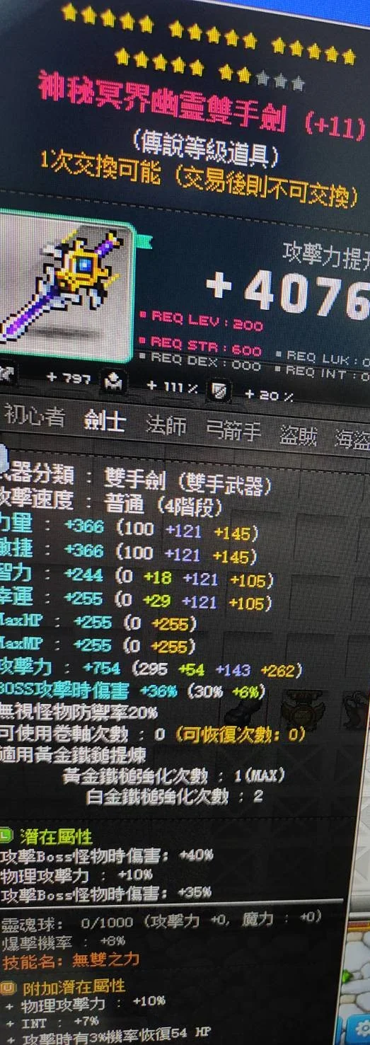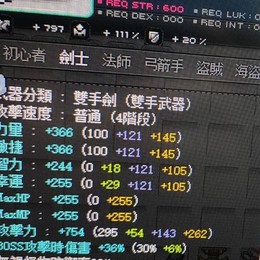 武器主職用潛:75%BOSS10%物攻(職業主流主潛能)