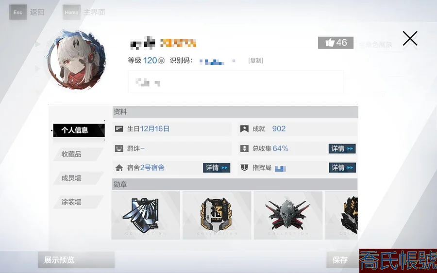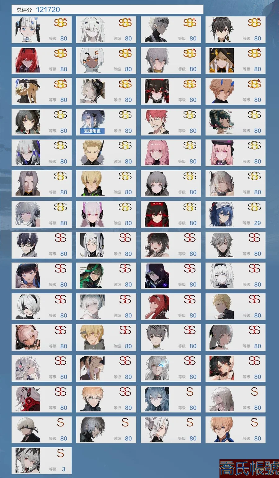 【OBZWXSI743242】等級:120,總評分:121720,成員塗裝:23.5%收集率; SSS+成員數量:12,SSS+成員:4S琉璃,4SXXI,4S明覺,4S遊麟,4S瑰麗,4S銀牙,4S夙星,4S爆裂,4S零度,4S流光,4S黎明,4S異火;SSS成員數量:16,SSS成員:3S幻奏,3S迴音,3S擎驅,3S清商,3S凜冽,3S弧光,3S萬華,3S溢彩,3S夜刃,3S重能,3S風暴,3S極晝,3S仰光,3S蝕暗,3S紅蓮,3S;SS成員數量:22,SS成員:2S逆旅,2S隱星,2S華鍾,2S戲炎,2S嵐音,2S雀翎,2S狂犬,2S森息,2S2B,2S銀冕,2S緋耀,2S榮光,2S輝曉,2S暗能,2S遙星之座,2S脈衝,2S深痕,2S真理,2S深紅囚影,2S鴉羽,2S深紅之淵,2S超刻;,成員塗裝:晴喻天音,寧芙浪謠,長夜瞭望,赤錦洄夢,蒼空熾月,緋瀾盛律,曉兔闐春,萬靈遊行,拾夢白菀,綺願稚夢,祈曉織翼,逐魔幽芒,深海少女,骸骨新娘,紡光同塵,罪誓茜羽,夜鶯玫瑰,無瑕樂曲,訖夜冥魑,朱雲流靄,迷途夢魔,夏雪微鳴,齒輪紅帽,破壞者裝束,少年的裝束,寄葉A型二號,寄葉九號S型,寄葉二號B型,灰都騎士,殘慟解脫,曼荼紗舞,逐聲迷蝶,孤夜黯棘,猩紅注射,白夜領航員,彎鉤船長,輝煌流星,灰羽·零度,垂露芳馥,春風淺,聖誕之約,假面麗影,終途巡獵,終末之旅,破曉,雨街漫步;武器塗裝:誓時雪,南十字星,鏗霆卯,悲愴奇蹟,茜蕾伴生,彌願風鳴,森宇幻翼,瀚空,輝月幻想曲,閃耀旗幟,,天地一擲,靜夜新生,耀言誓約,龍爭競,永夏激浪,掠影神鋒,熒塵斂願,伯利恆之星,米斯基之劍,巡夜之弧,紫鳶,夤夜驚鴻,輕絲俏,白金天鵝,科德韋爾-49,碧海狂鯊;【官方賬號】