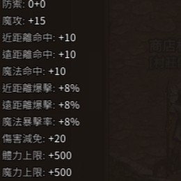 近距離爆擊率+8%、遠距離爆擊率+8%、魔法爆擊率+8%、SP+15