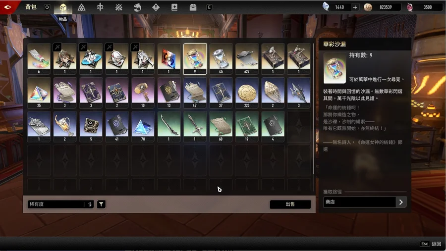 道具:虹色稜鏡25個(可自行兌換想要的時裝或武器) + 華彩沙漏9個 + 純白沙漏45個 + 月石1400