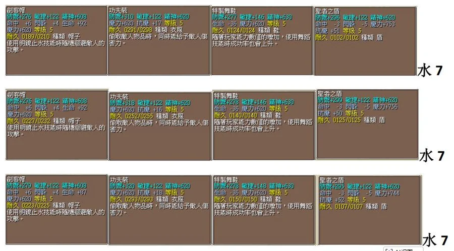 水7熾炎帽衣鞋盾=10500T