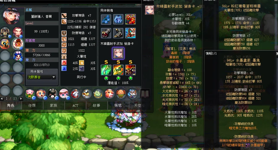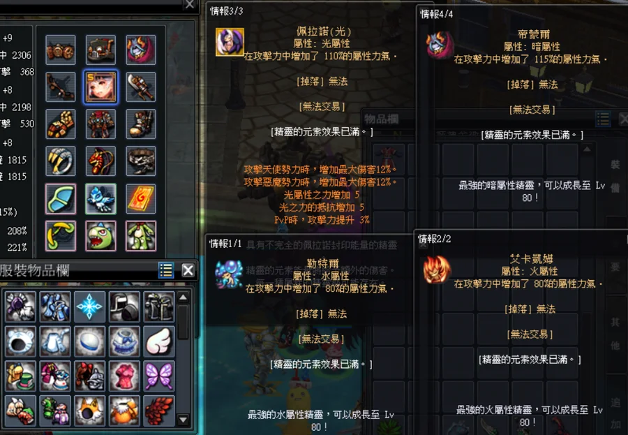 精靈:新水精(80%)、新火精(80%)、新暗精(80%)、天惡光精(110%)