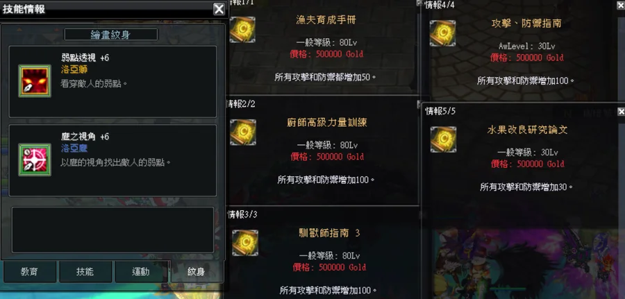 紋身:弱點透視+6、鷹之視角+6