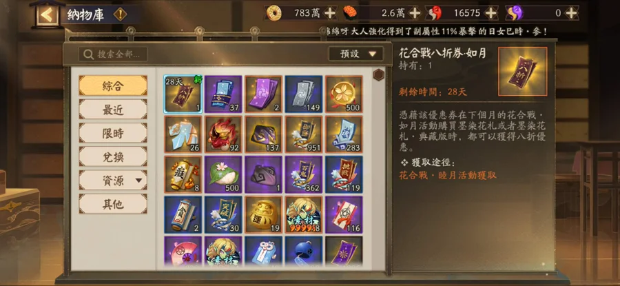 • 勾玉 16,575+ 持續增加