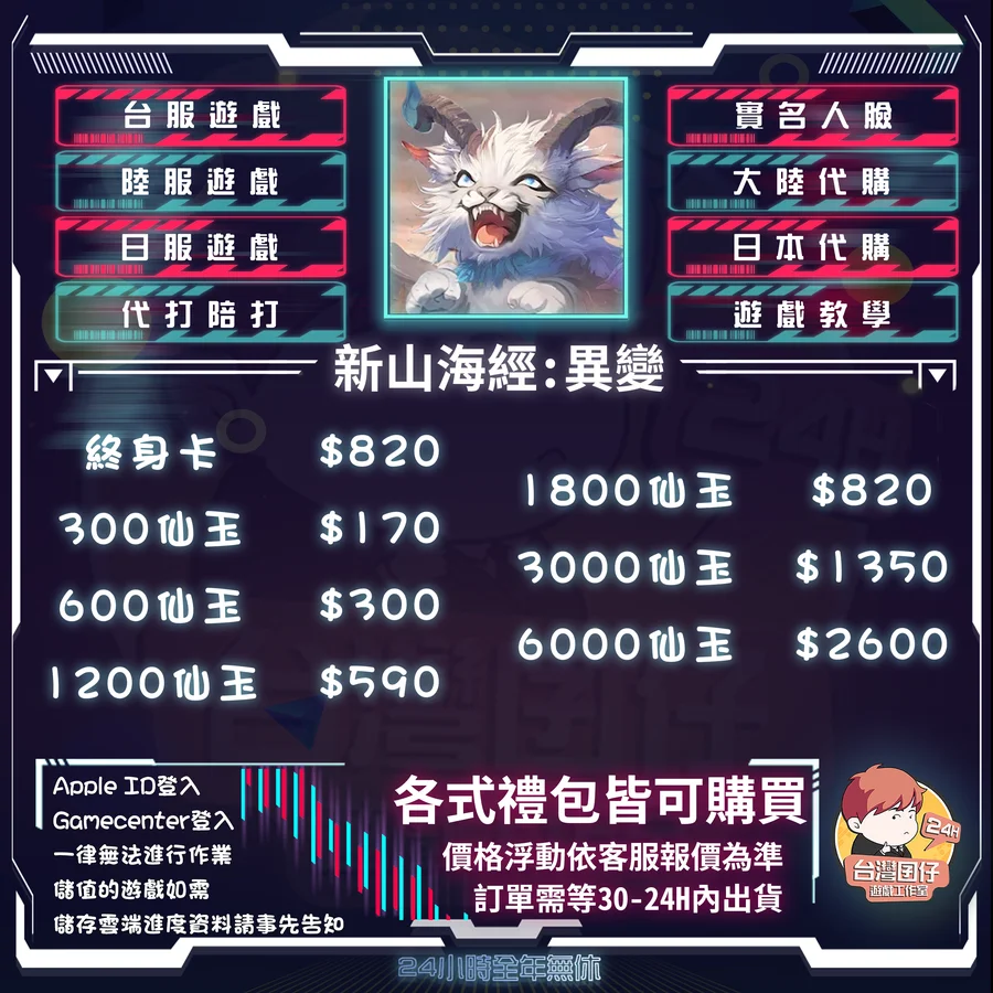 6️台灣囝仔台陸手遊代儲純粹為協助代儲服務,僅收取服務費,無賺取額外差價。