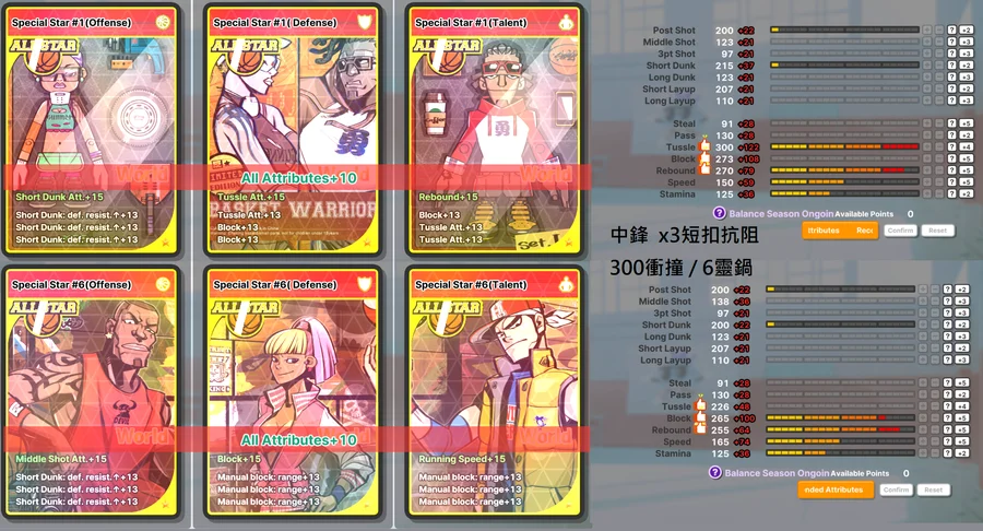 角色: 老虎C, Jason lee PG, 吸血鬼PG男/SG女, Stella SG, Grisia SW, Vale PF.