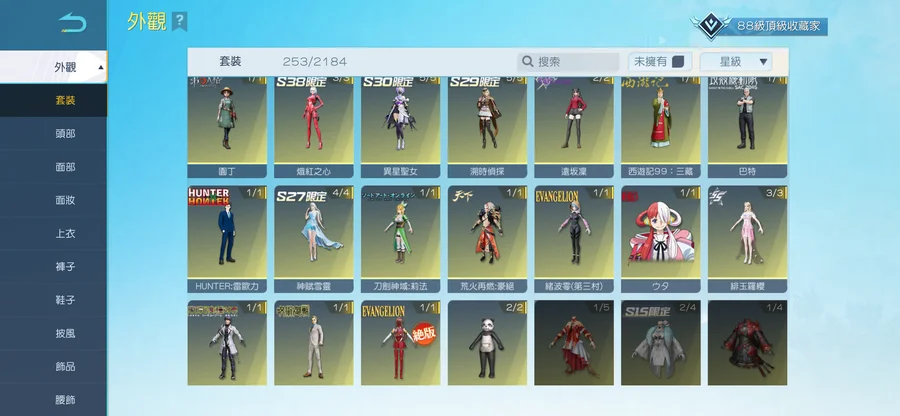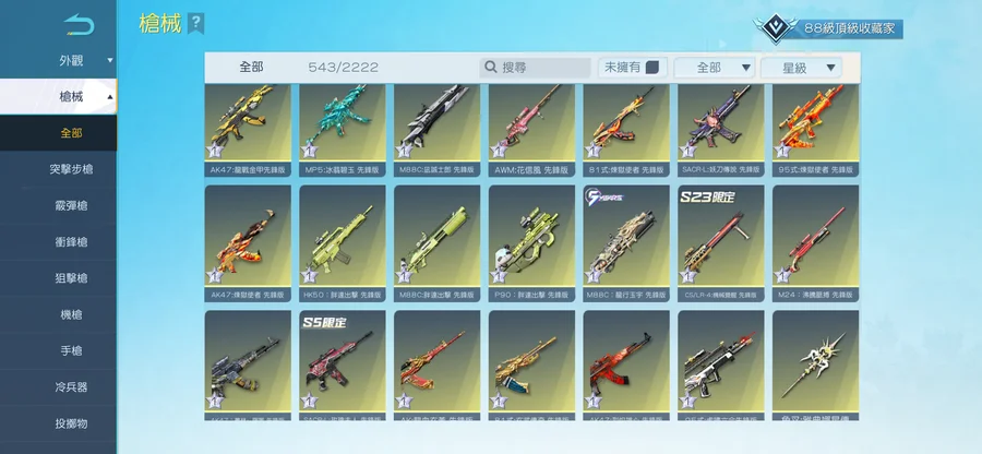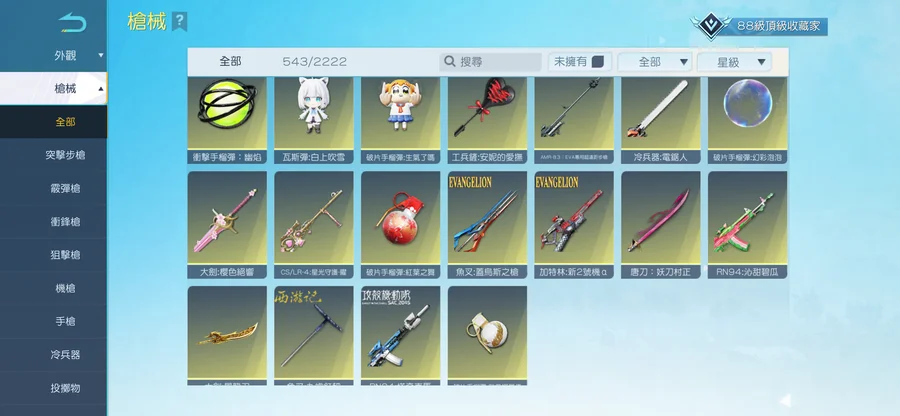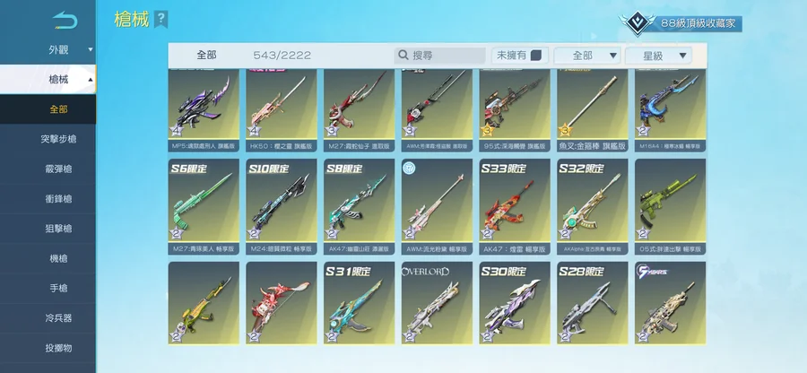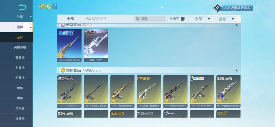 黑川伊佐那7級造型,巨人殿堂槍,賽年殿堂sacr-L,還有很多7級槍,一顆殿堂水晶,殿堂值184