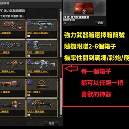 一個帳號含強力武器選擇箱2-6個 隨機數量隨機發