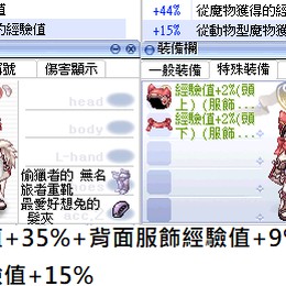 角色等級LV100以上,正面裝備經驗值+35%+背面服飾經驗值+9%=44%