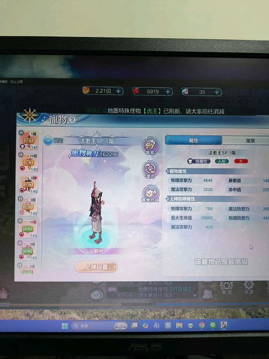 【180等】普服 180等 362萬戰力 三顆金攻速 寵物sp老法王,歡迎私訊詢問其他細節