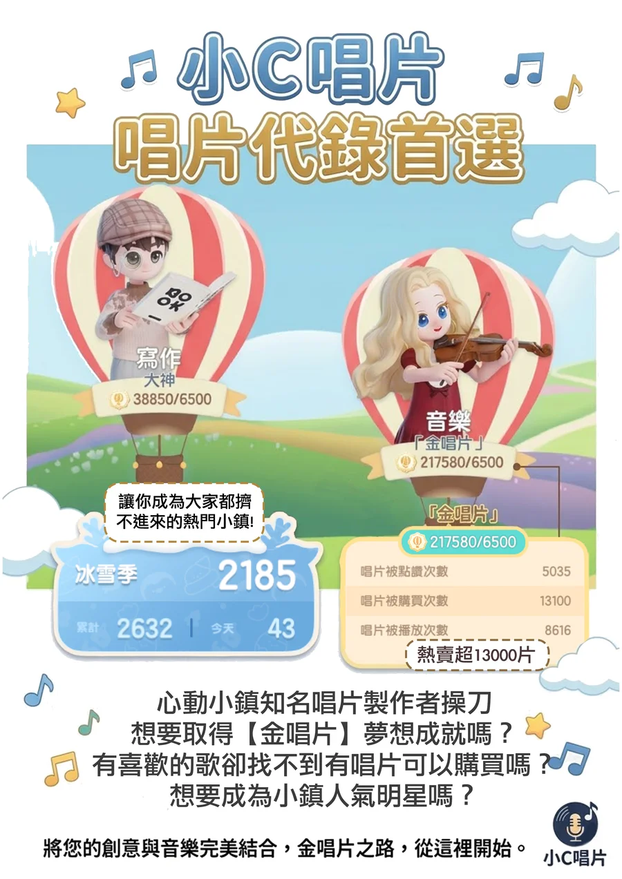 🏆 【小C】心動小鎮|全服第一銷量唱片錄製・音樂訂製首選 🏆