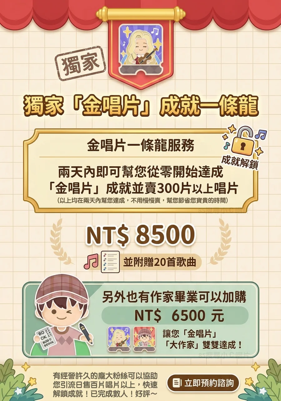 想要取得【金唱片】夢想成就嗎?