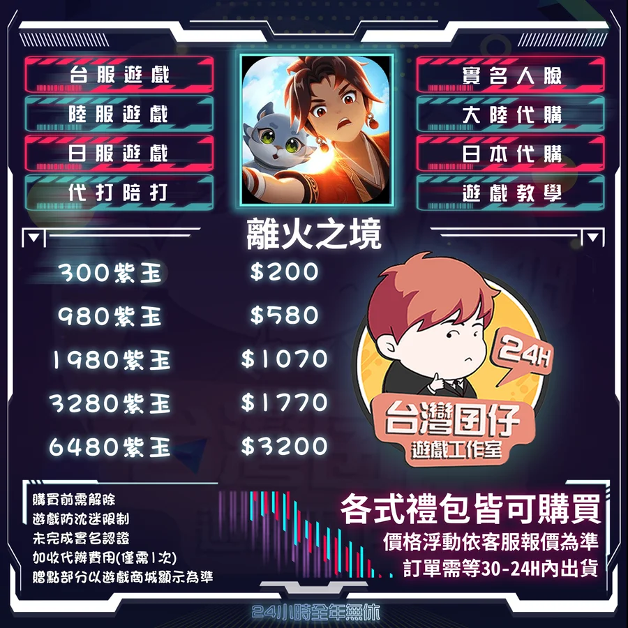 6️台灣囝仔台陸手遊代儲純粹為協助代儲服務,僅收取服務費,無賺取額外差價。