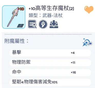 青鐵柱槍、生存魔杖、狂暴颶風、破甲短椎 (每個職業武器都有附魔4)