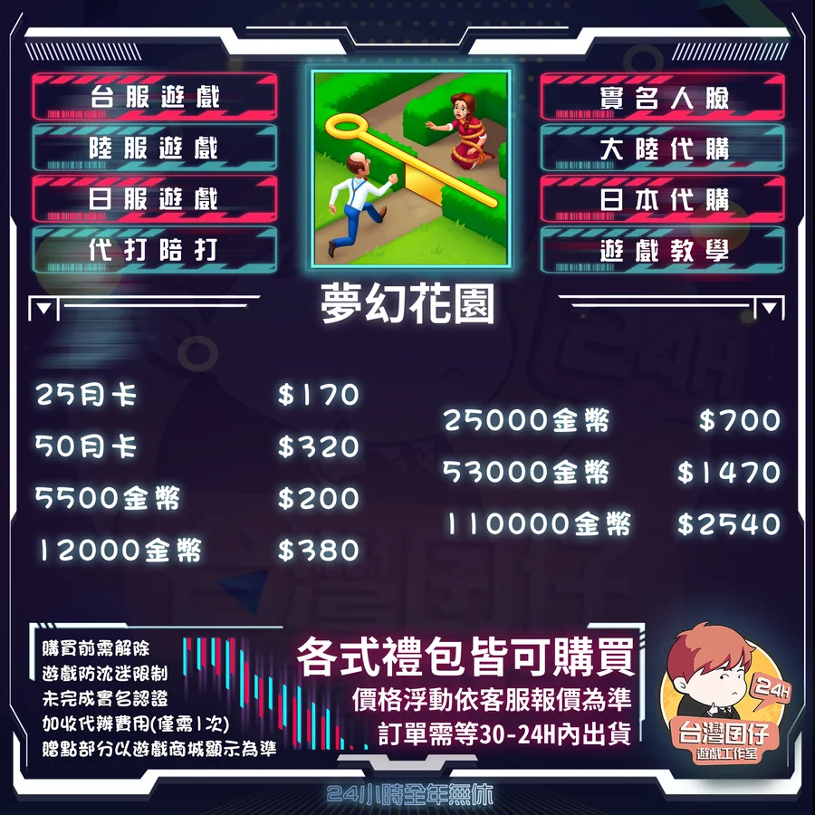 🏆夢幻花園 陸服代儲賣場|