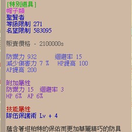 隊伍保護術 Lv + 4 (節省SP43點)
