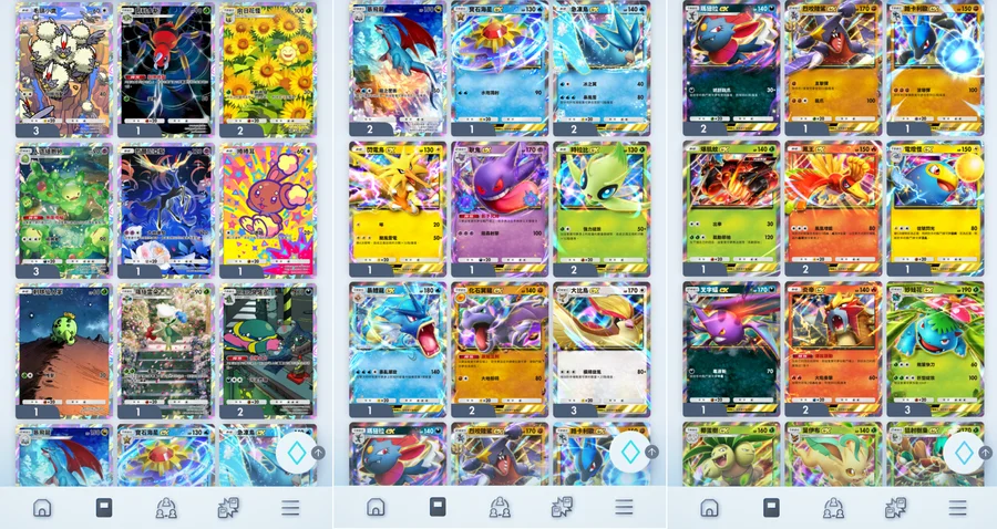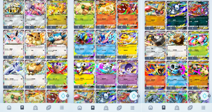 ✦ 鑽:火焰鳥EX、西獅海壬EX、鬃岩狼人EX、投擲猴、三地鼠EX*3、帝牙盧卡EX、大尾狸EX、阿爾宙斯EX、爆肌蚊EX*2、露奈雅拉EX、頓甲EX、阿伯蛇、伊布、圓陸鯊、蚊香君、花樣海獅、捷拉奧拉、嘟嘟利、穿山王、鴨嘴火獸、拉蒂亞斯、無畏小子、肯泰羅