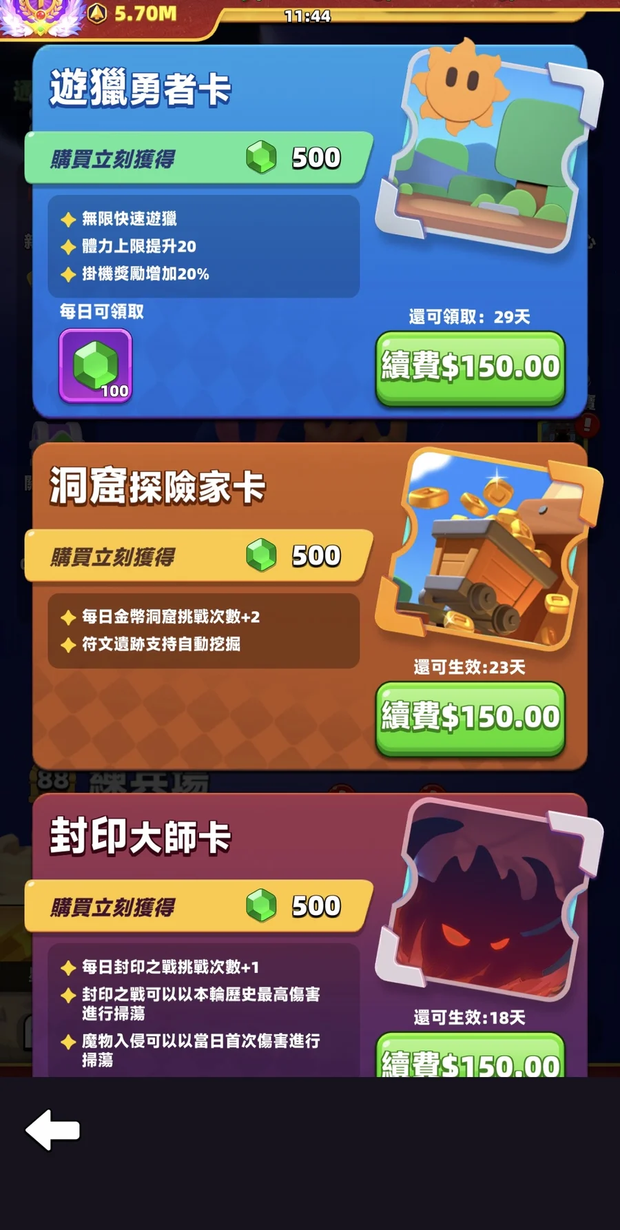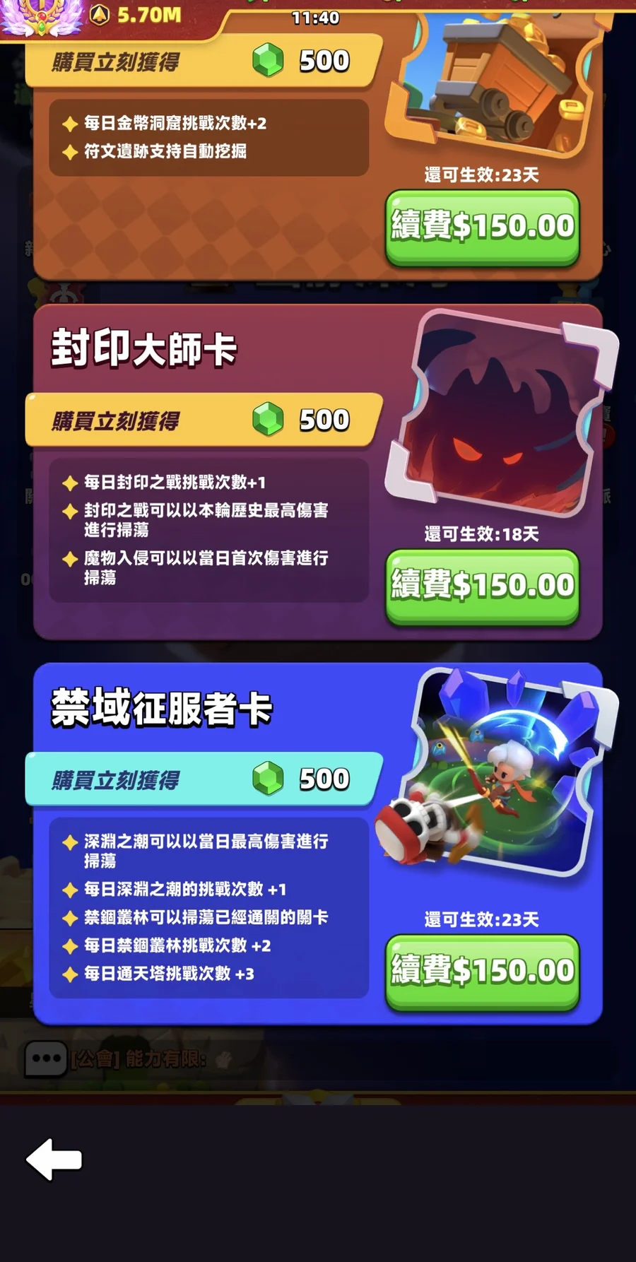 其餘特權也固定每個月都有持續購買