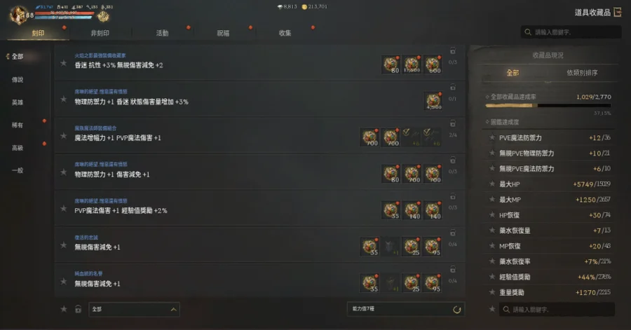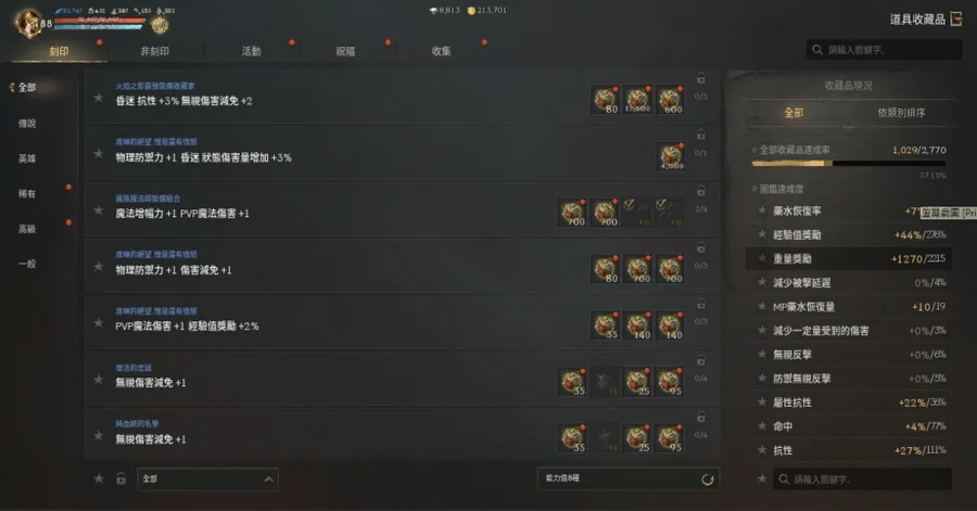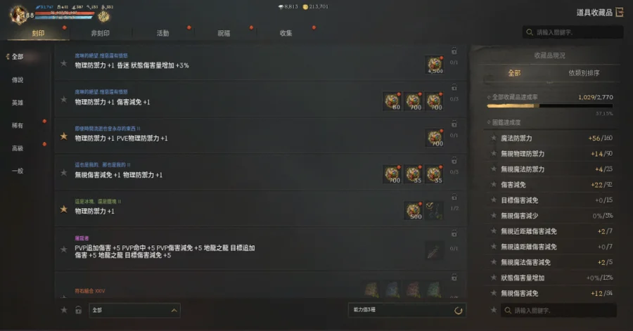 【變身收藏】: 收集卡片(72.13%)、完成收藏品(42.87%)