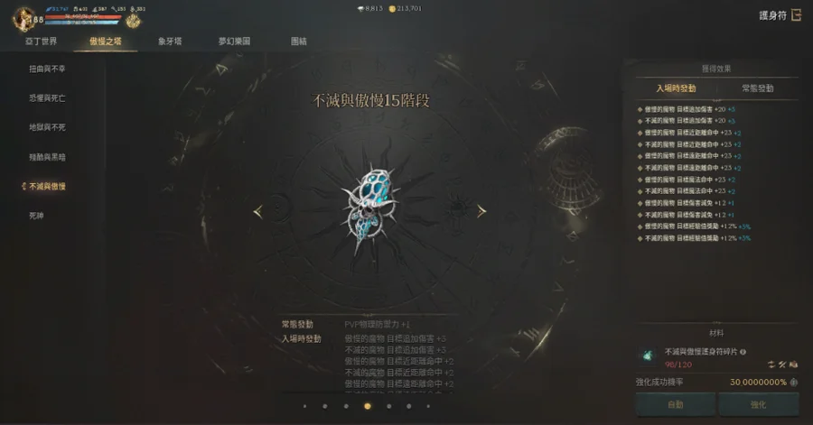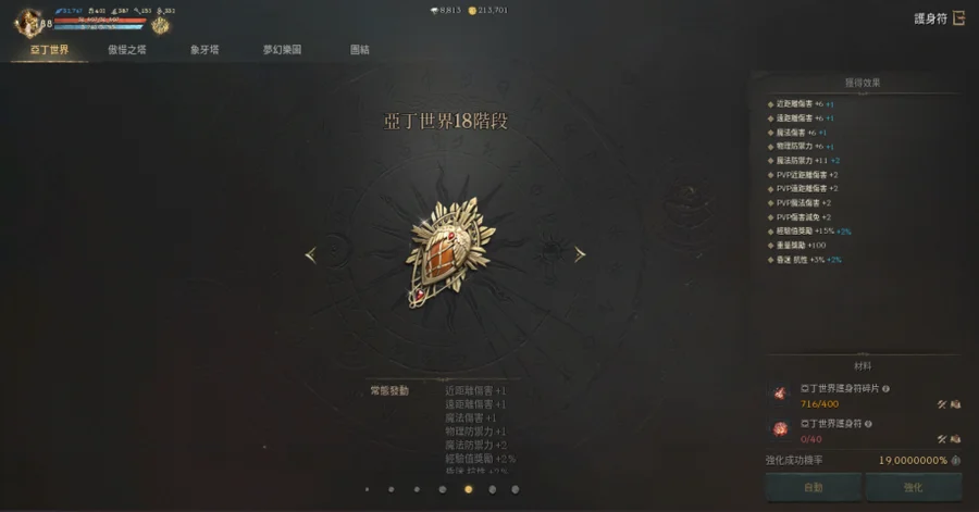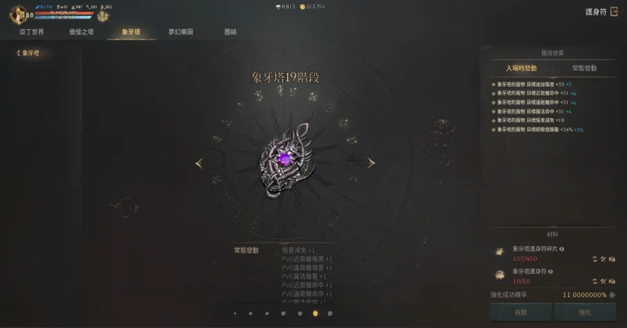 【素質】:血量32617、魔傷227/魔命385/魔增152、防/魔防409/383、PVE防524。