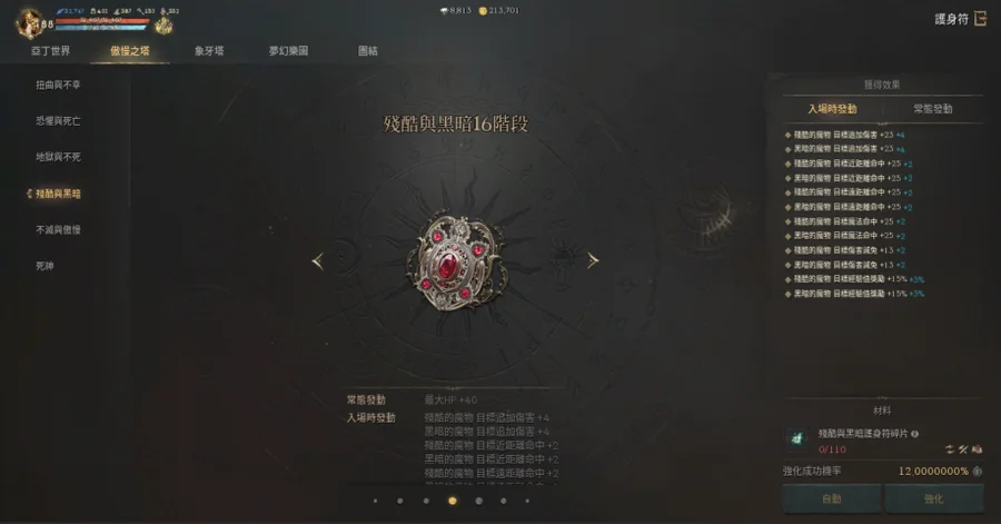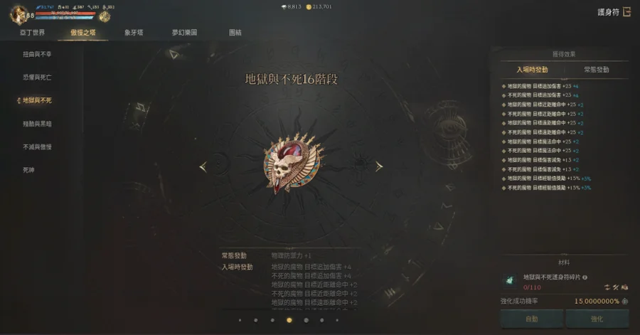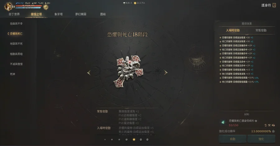 亞丁世界(17階)、扭曲不幸(17階)、恐懼死亡(17階)、地獄不死(15階)、殘酷黑暗(15階)、不滅傲慢(14階)、死神(0階)、象牙塔(18階)、夢幻樂團(13階)、活動團結(0階)