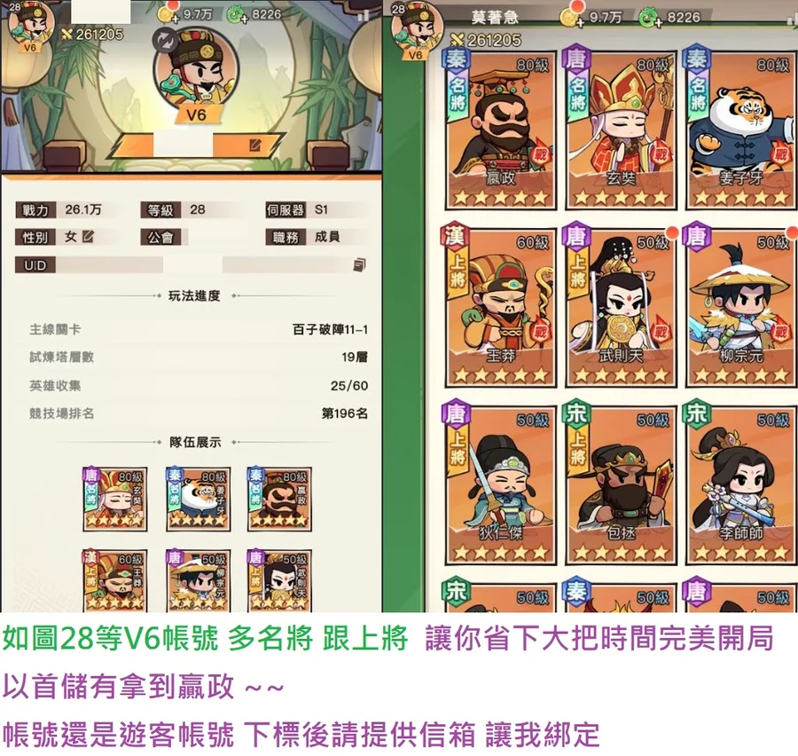【初始號】★僅此一組★VIP6★歡迎下標◆完美開局★多名將★以首儲