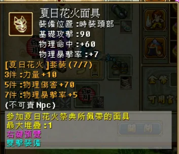 【衣服】浴衣: 物傷 +70、力量 +20、出手 +50