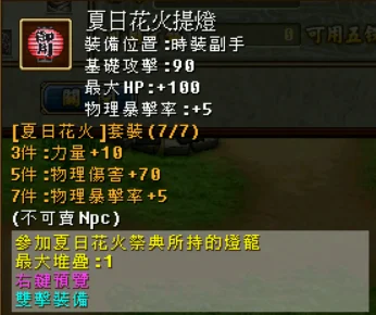 【副手】提燈: 物傷 +90、物爆 +5、HP +100