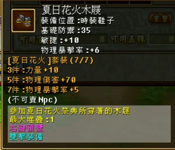 【鞋子】木屐: 物防 +35、敏捷 +10、物爆 +6
