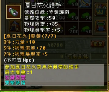 【護腕】護手: 物傷 +50、物防 +35、物爆 +5